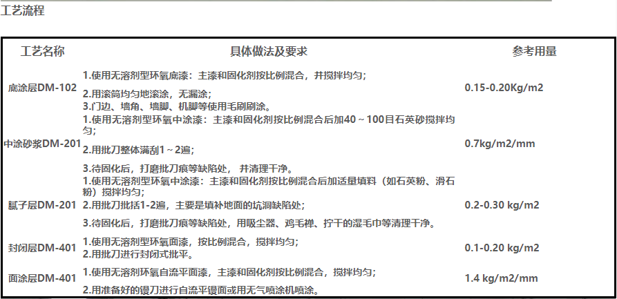 所使用材料: 迪美瑞環(huán)氧樹脂滲透封閉性底漆,環(huán)氧樹脂中途,環(huán)氧樹脂面漆,石英砂,膩?zhàn)臃?/span>